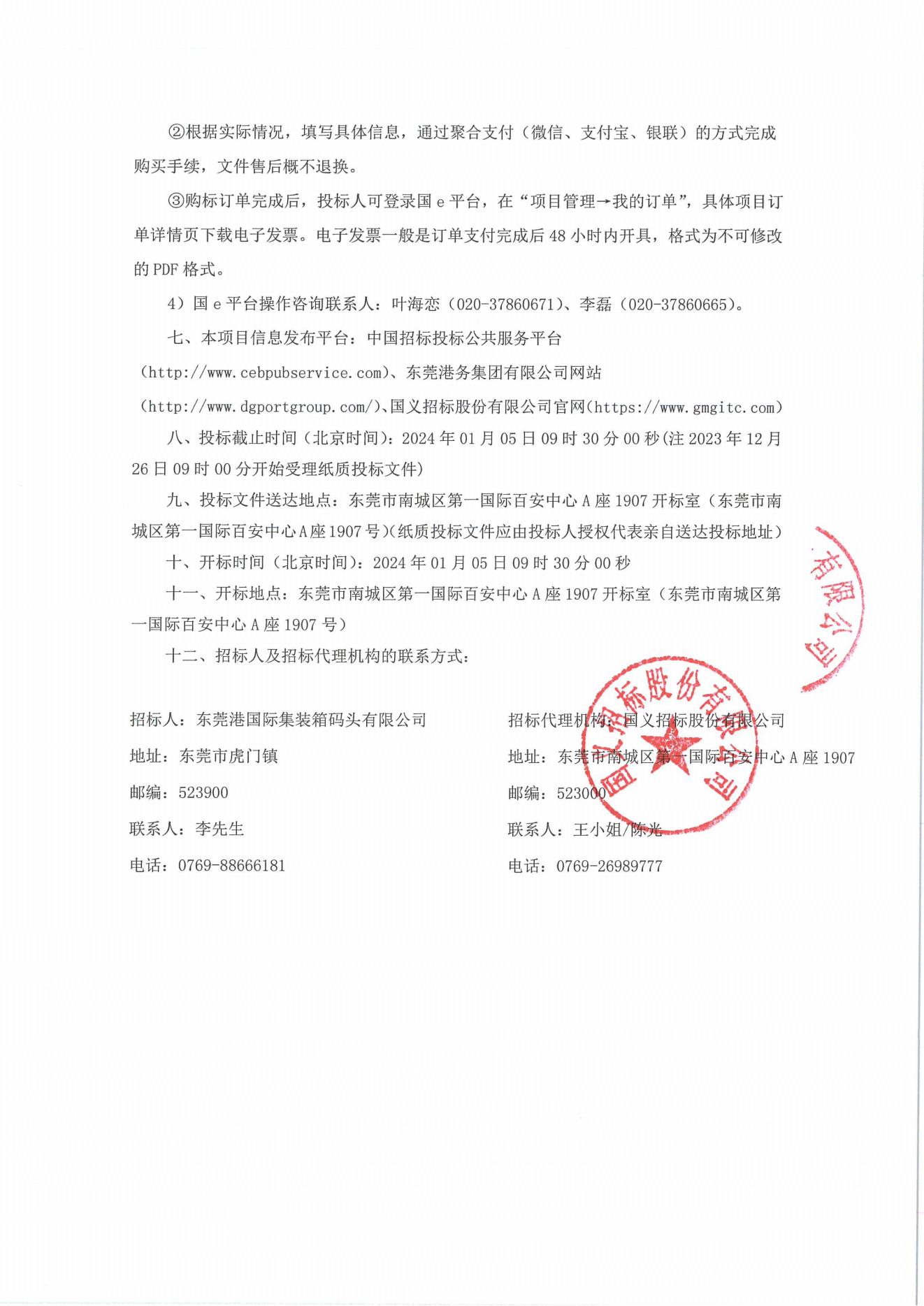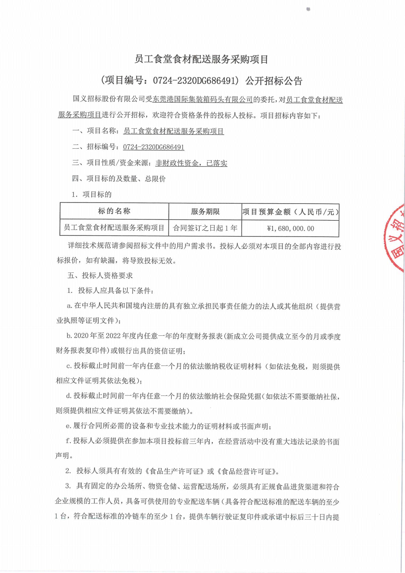 招标公告(食材配送服务-国际集装箱码头)