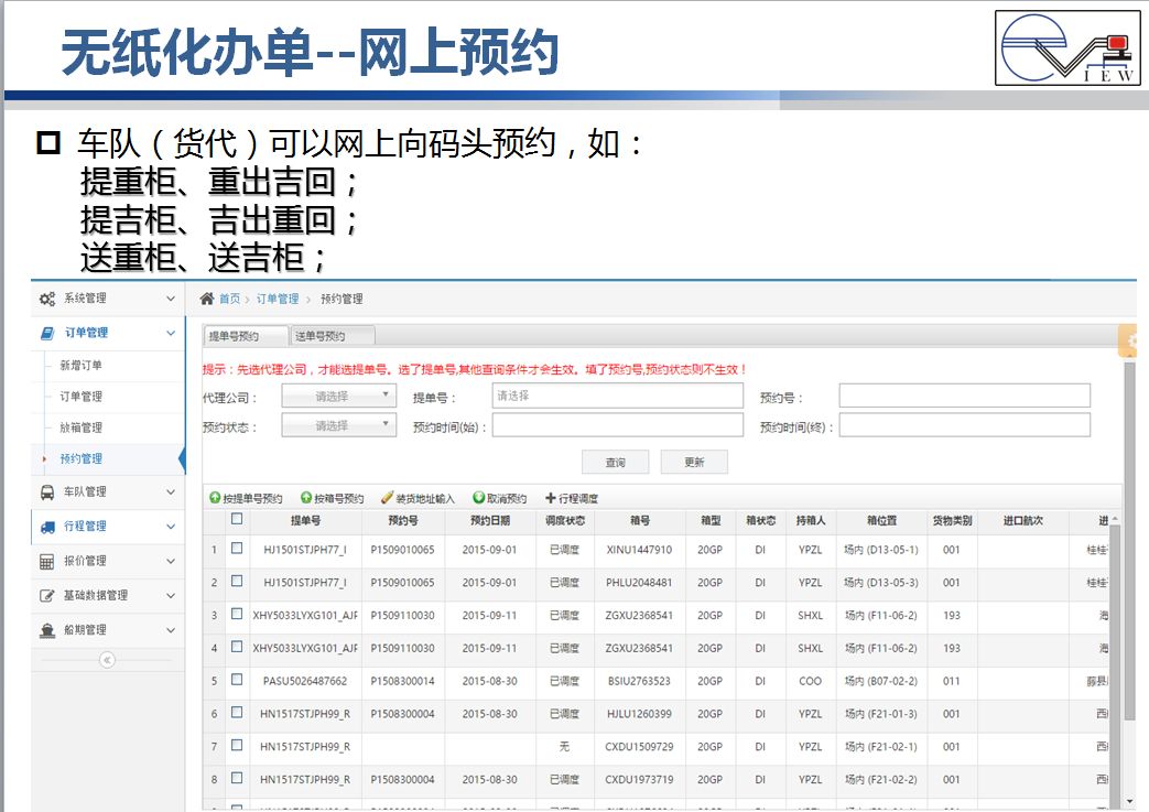 2.货代和运输公司仅需网上申请。货代和运输公司不需要去船公司换单,在办公室就能上网申请预约即可,降低人力、时间成本,提高工作效率。