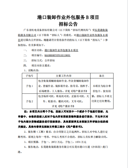 港口装卸作业外包服务B项目招标公告